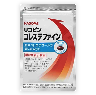 カゴメから発売されているリコピン コレステファイン。リコピンを含んでいる点に加え、1日1粒目安になっている点はメリットです。